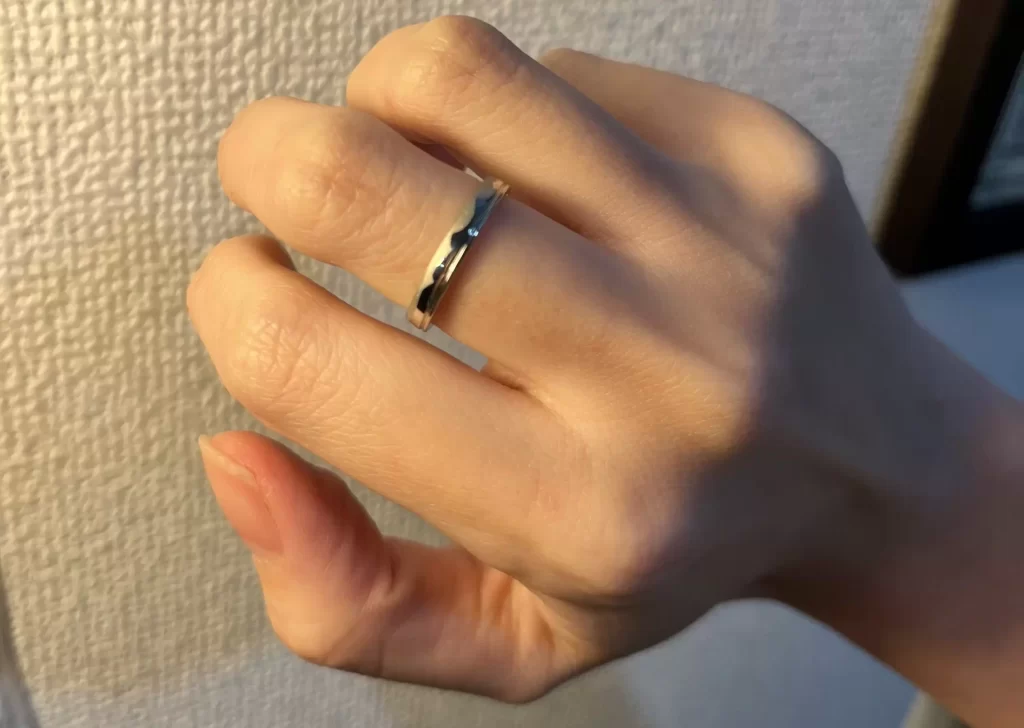差表デザインの指輪は私の薬指にジャストサイズ作っていただきました。