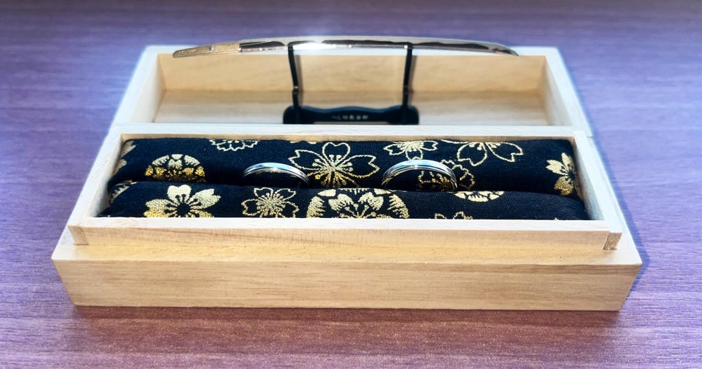 ちなみに指輪が入っている桐箱は福岡市博物館で購入できる刀剣香「圧切長谷部」が入っていた箱です。