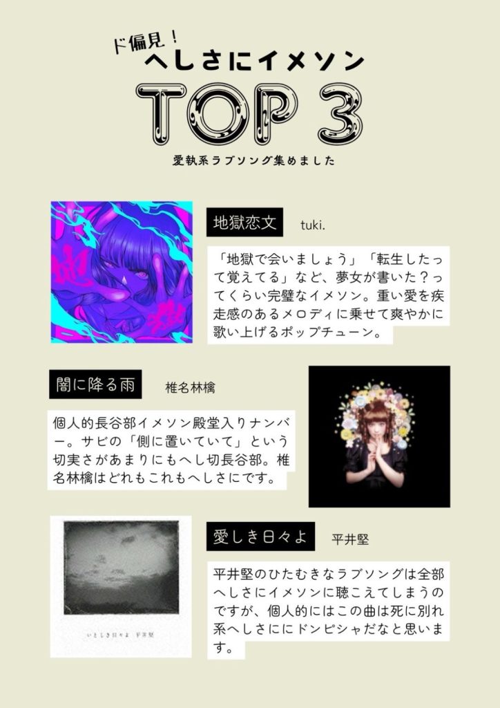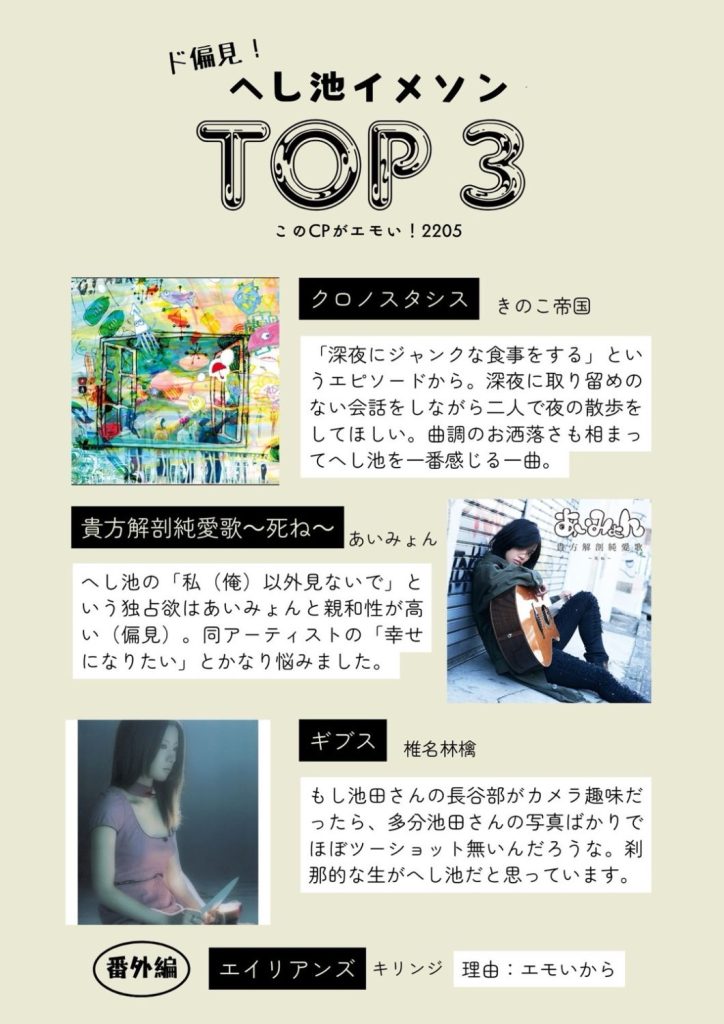最後に、私が考えたへしさにの汎用イメソンと、フォロワーさんと恋刀のイメソンについても軽く紹介して終わりたいと思う。